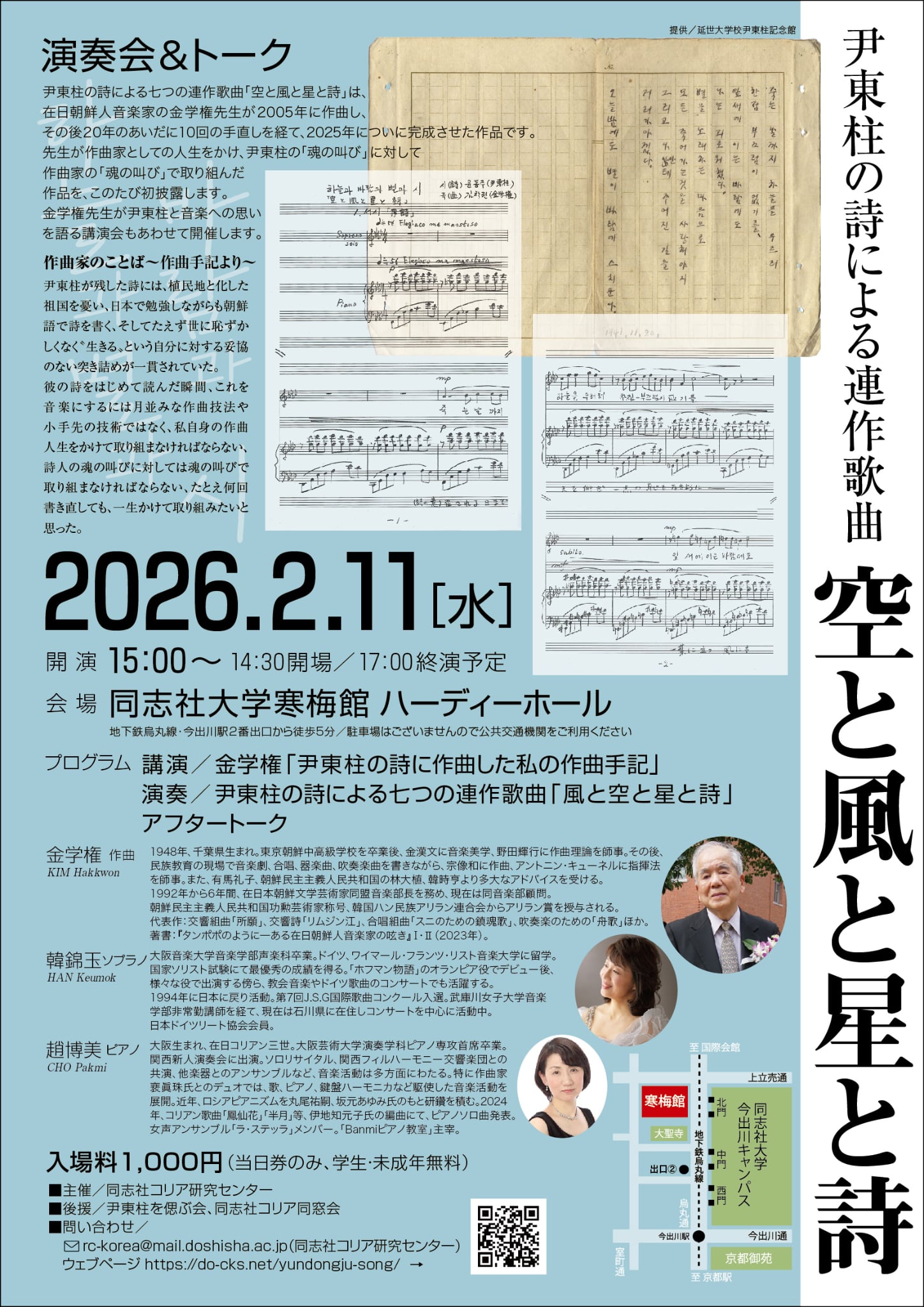 後援:尹東柱を偲ぶ会、同志社コリア同窓会